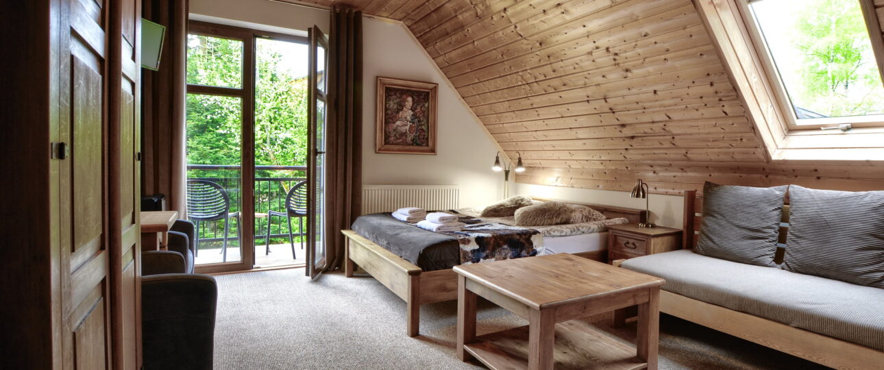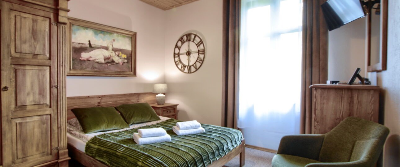 Pokój Dama z łasiczką – przestronny i wygodny, idealny dla pary lub rodziny 2+1. W…